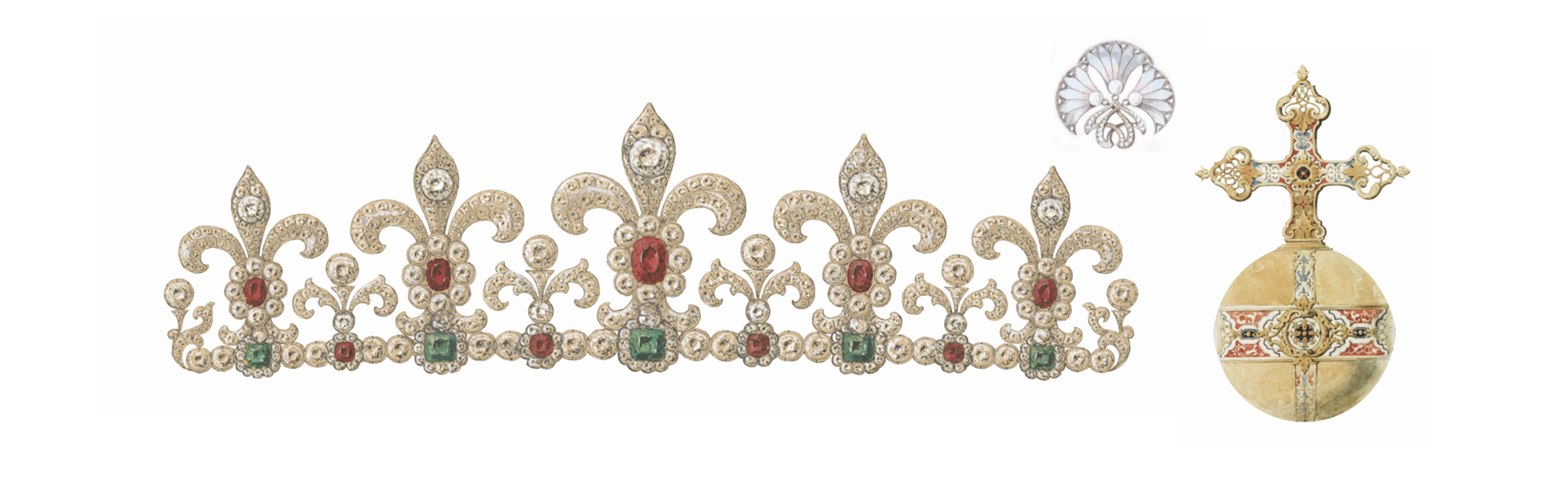 Az egykori császári és királyi, valamint a jelentős nemzetközi arisztokrata gyűjteményekbe tartozó különleges tárgyak között most először látható a közönség számára egy Theophil von Hansen által tervezett, neoreneszánsz stílusú, korábban Erzsébet királyné tulajdonában lévő csodálatos bross.