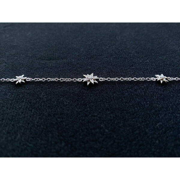 Három csillagos karkötő Erzsébet királyné híres havasi gyopár ihlette, Swarovski kristállyal kirakott ékszerkollekciójából. Mérete állítható: 16-19cm. A szolídan elegáns karlánchoz hozzá illő három csillagos nyaklánc is kapható webáruházunkban.
