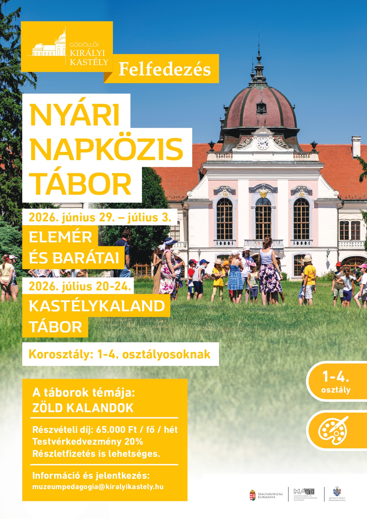 Programok:   Parkmesék herceg Egérváry Elemérrel felfedezőcsomag családoknak 2026. 04. 25-26. Herceg Egérváry Elemér a Gödöllői Királyi Kastély első számú egérlakója segítségével felfedezheted a kastélypark titkos helyeit, állatait, növényeit. A munkafüzet segítségével játékos módon szerezhetsz ismereteket és a parktérkép segít a tájékozódásban. Az önálló felfedezőcsomag a kastély jegypénztárában található most hétvégén kedvezményesen 500 Ft-ért. Magyar nyelven elérhető az egész nap folyamán.
